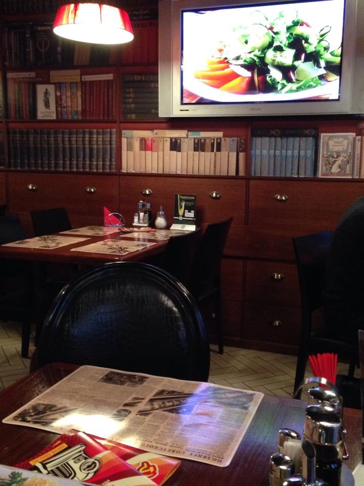 Неплохая кухня и интерьер. Приветливая женщина в гардеробе. Официанты вежливые. Кто-то, чекинясь, путает это кафе и одноименную столовую на Мира.