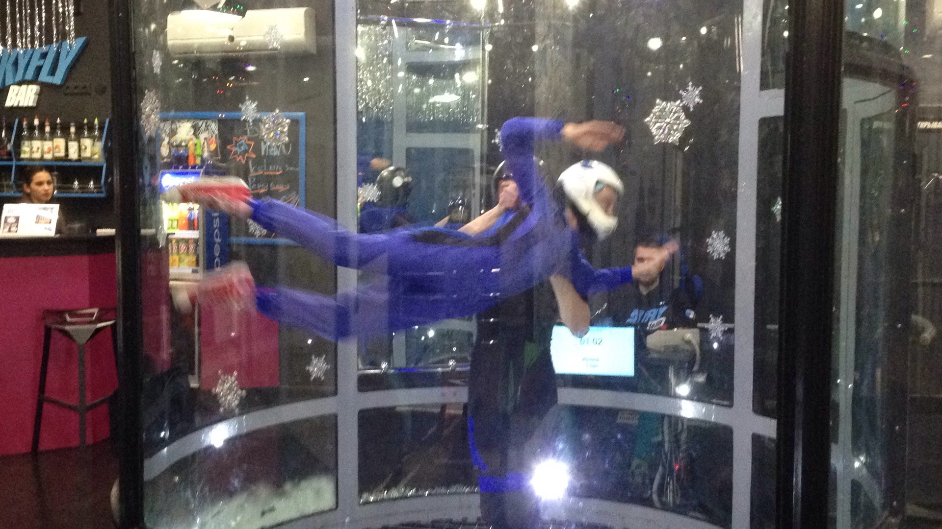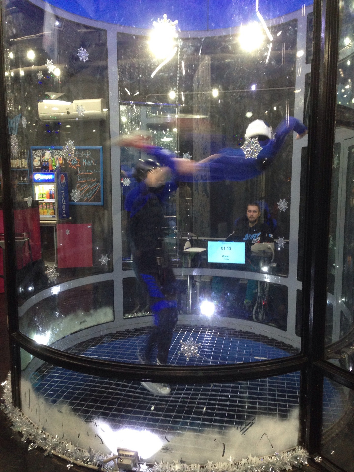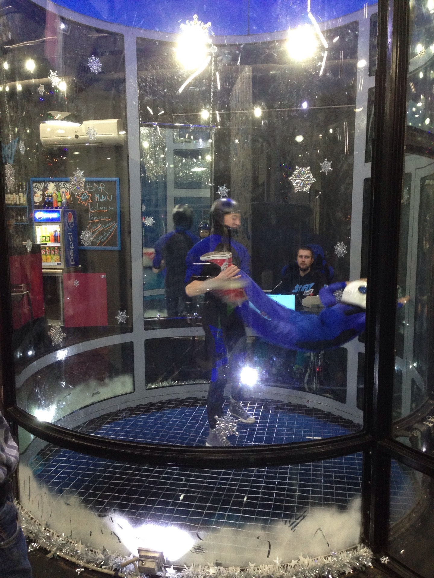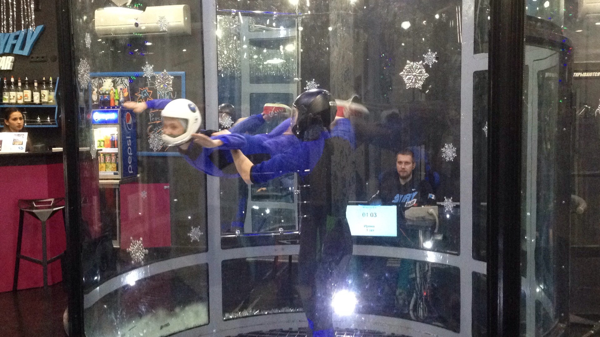 Прекрасный тренер Дмитрий, дружеская атмосфера и незабываемые эмоции. Когда видишь как внутри этой трубы летают люди становится боязно, но под чутким руководством тренера все становится лучше :)